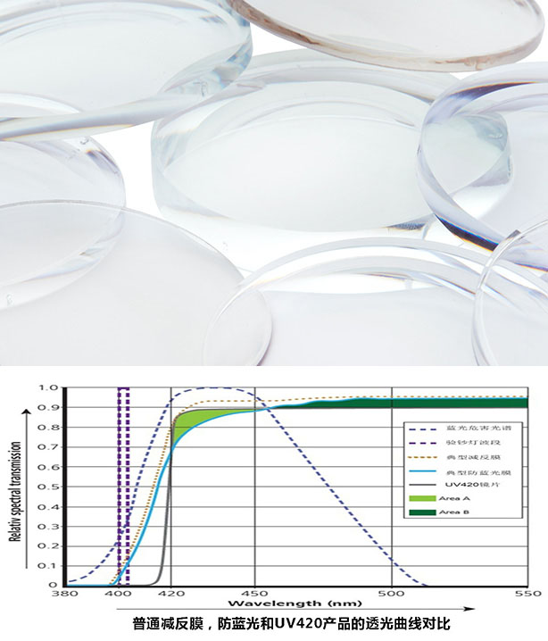 防藍光91免费处女可反射發散的部分藍紫光,阻擋光線進入眼睛。可將光譜中380-455 nm光線(藍光危害)的透光率降低到15%,同時讓大於460 nm的光線保持高透光率。